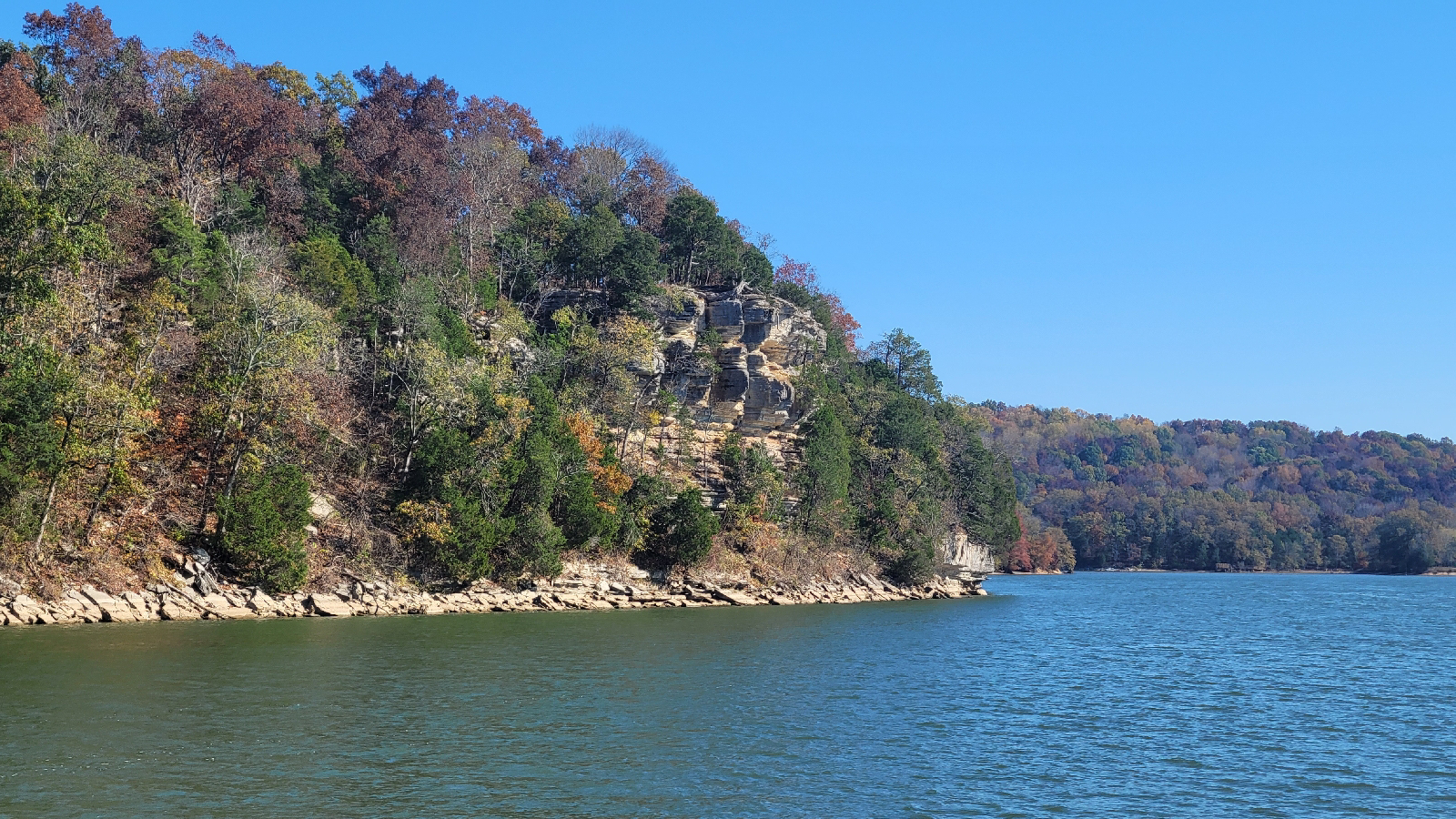 Today we left our spectacular anchorage in Dover Tennessee area. It was 29° this morning and there was ice on the bow and top of the boat. Not a lot of ice, but ice. We did not sign up for ice. Happy Halloween.